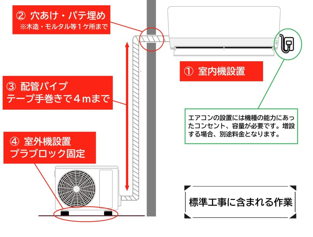 | エアコン取付(標準工事大地置き) | ¥14,300 / 台 |